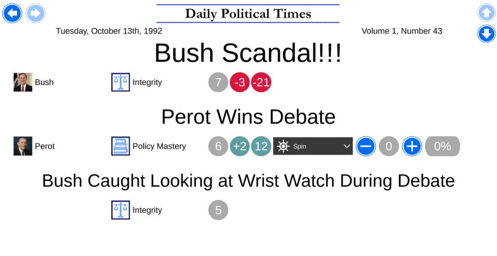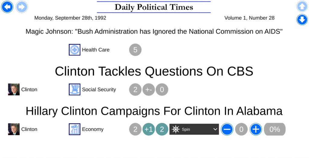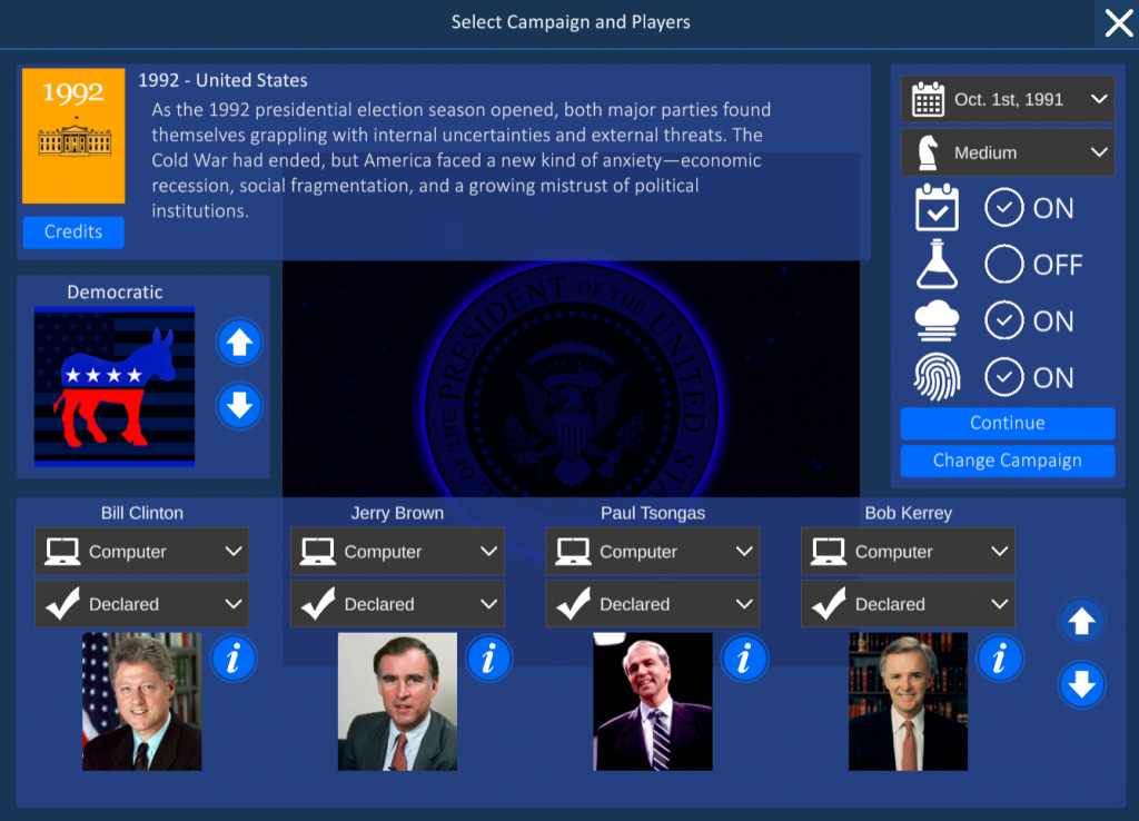 The campaign features upgraded portraits and issue icons. It also features drastically re-written bios for the issues. The margins have been perfectly adjusted to allow for sensible results. Some new events were written as well.