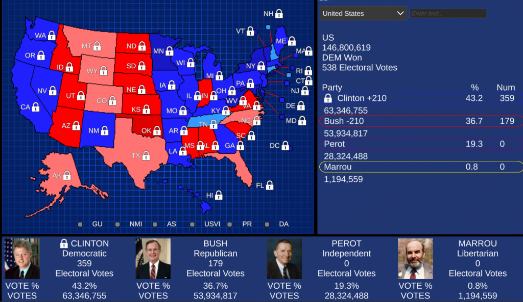1992 – Bush vs Clinton vs Perot