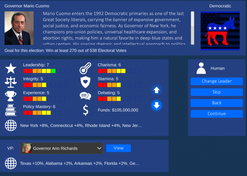 Every nominee has fleshed out gameplay. Sometimes it’s fun to just play as RFK Jr withdrawn candidacy and just watch the results. Think of this as a realistic election simulator as well as a game.