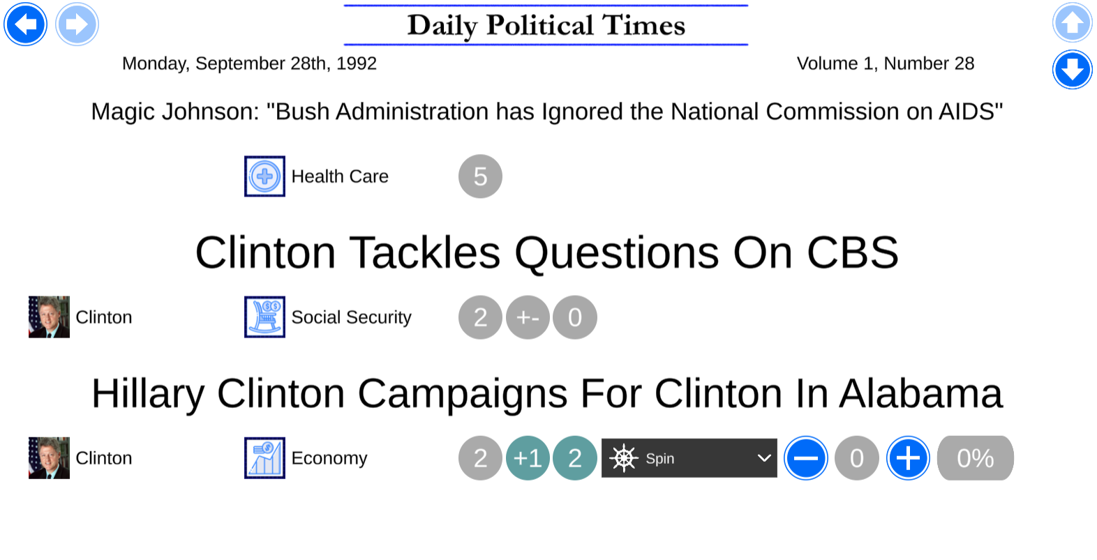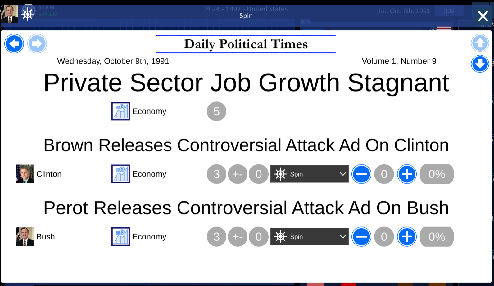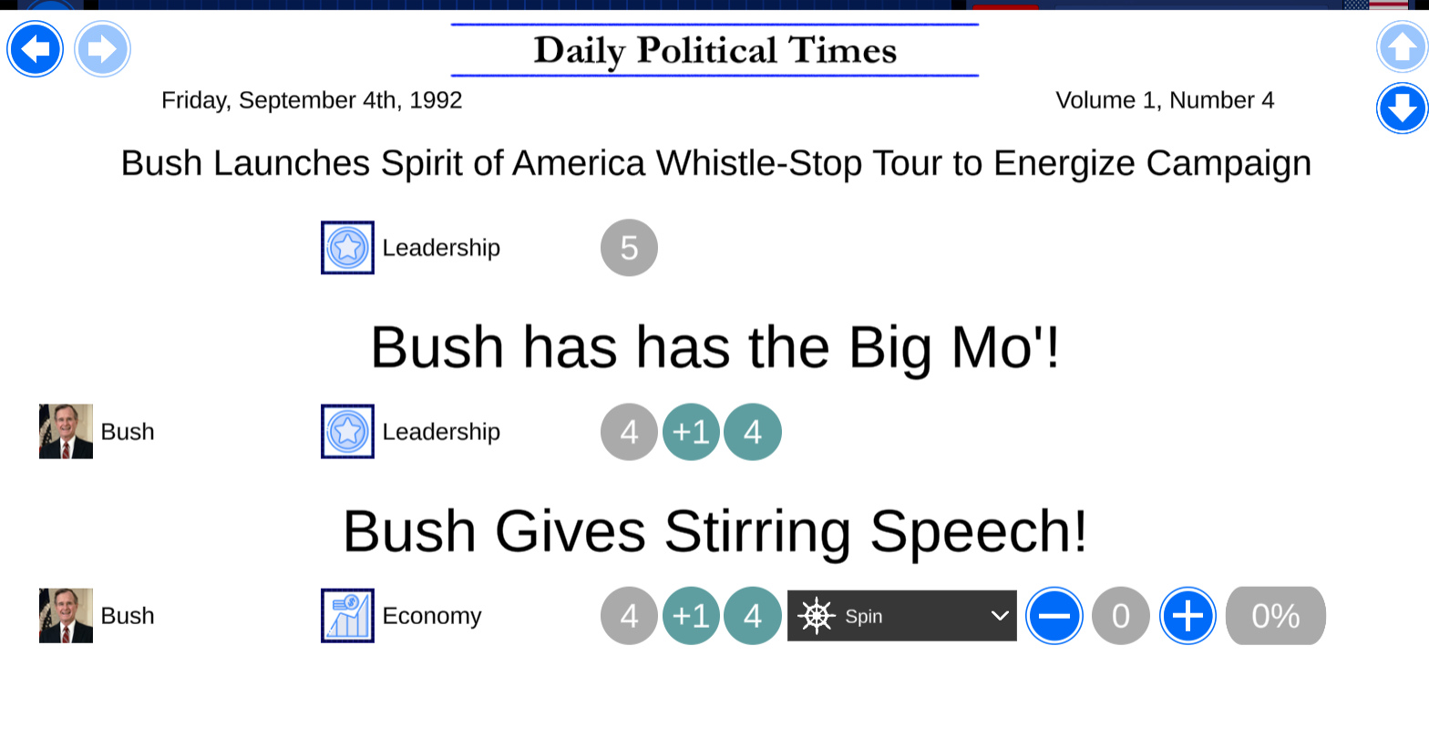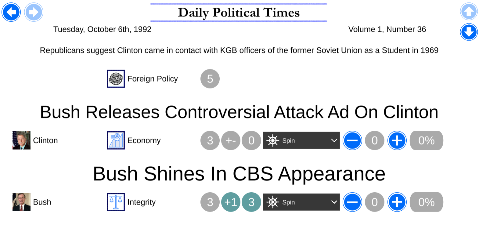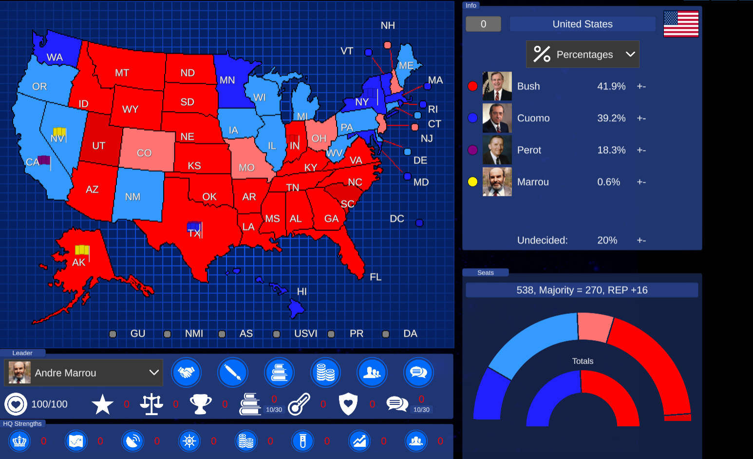 The campaign features upgraded portraits and issue icons. It also features drastically re-written bios for the issues. The margins have been perfectly adjusted to allow for sensible results. Some new events were written as well.