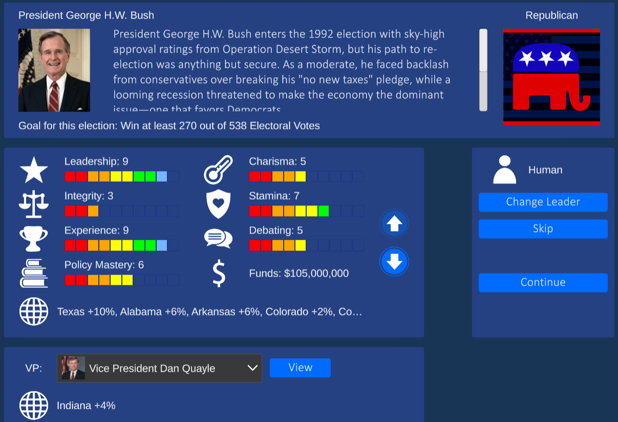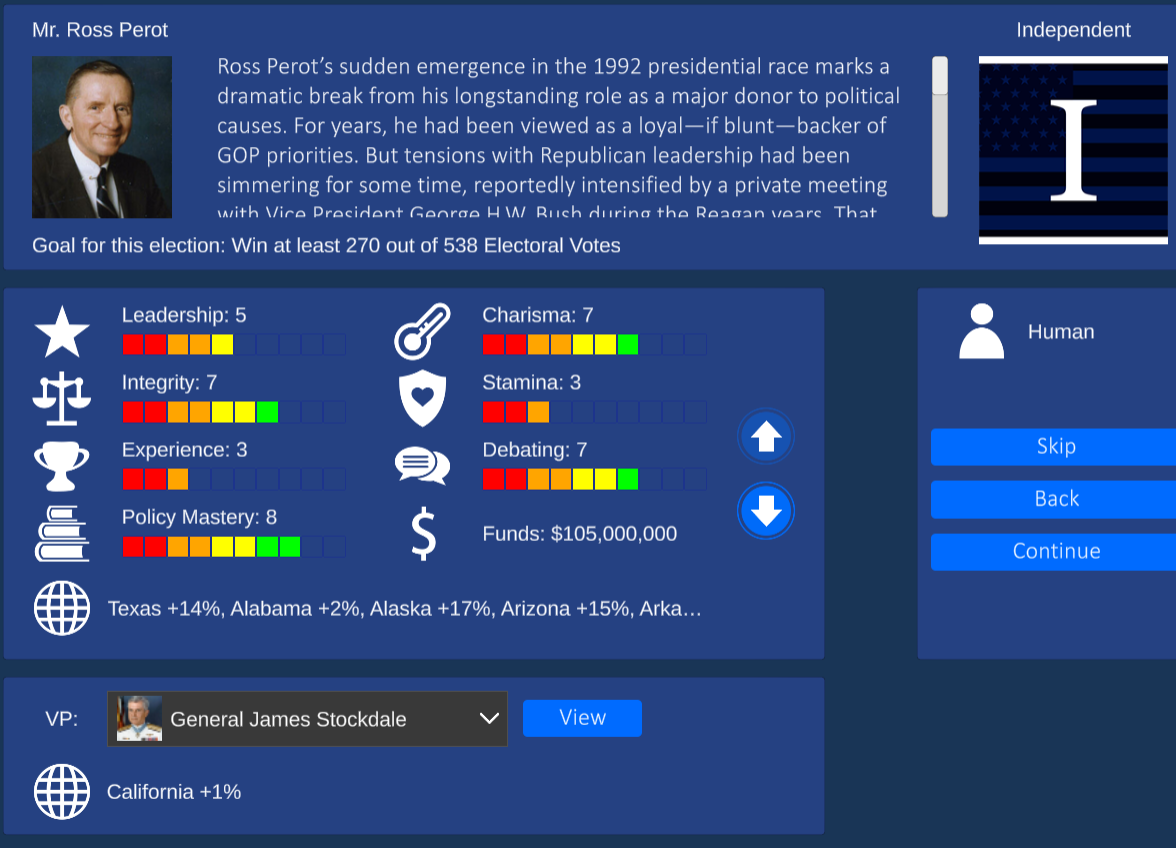 Every nominee has fleshed out gameplay. Sometimes it’s fun to just play as RFK Jr withdrawn candidacy and just watch the results. Think of this as a realistic election simulator as well as a game.